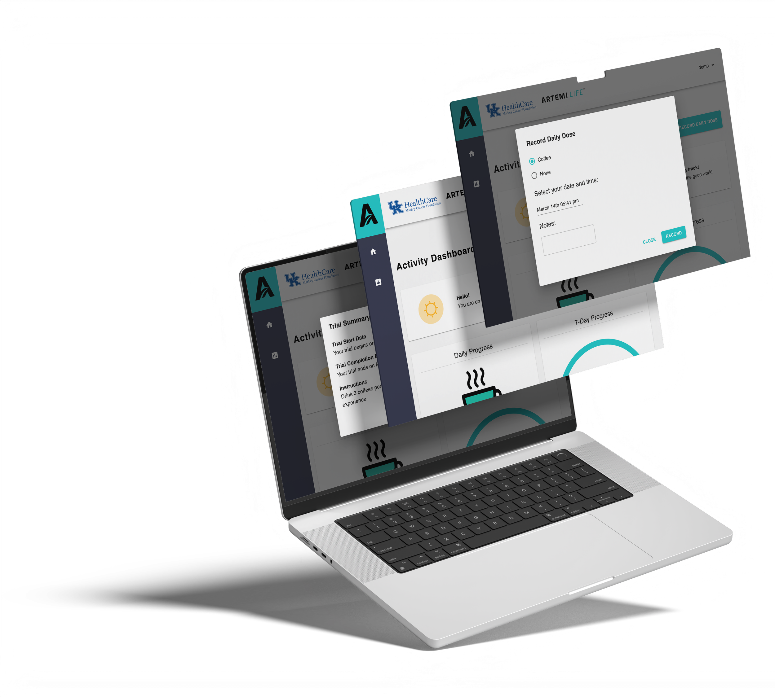 ArtemiCafe Decaf, the coffee product of ArtemiLife, was studied in clinical trials to prove its effectiveness in patients with ovarian cancer. To bridge the gap between patients and clinicians, we also developed a custom web app that enables cancer patients to track their daily ArtemiCafé intake, replacing traditional paper logs with real-time digital tracking. The tool provides instant accountability and seamless communication for healthcare teams overseeing these trials.